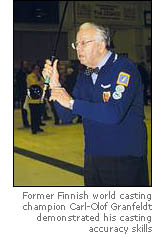 But from a viewers point the only obvious change to previous years was the doubled show area for the fair. This really made it possible to watch and participate in casting instructions. There were also competitions fought where the altmeister and former Finnish world champion in 1963, Carl-Olof Granfeldt showed how he still masters accuracy casting skills. One of the competitions was won by the young Finnish female caster Marianne Kosonen.