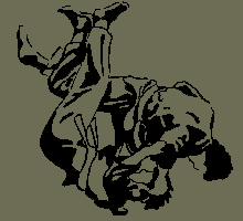 JiuJitsu (from Jap. JU "gentle")...Uses holds, chokes, throws, trips, joint locks
