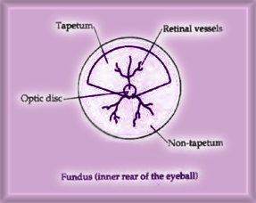 The Collie Eye Anomaly (CEA)- This syndrome, (a group of conditions that appear in conjunction with each other) is present prior to birth. It can be diagnosed by a veterinary ophthalmologist when a puppy is just a few weeks old. Drops are given to dilate the pupil and the interior of the eye is examined with an ophthalmoscope. The eye is then graded as "clear", not affected, or as affected, showing signs of the syndrome listed below. (More than one term is often given as there is no uniform nomenclature used by the doctors.) Staphyloma, Coloboma, Ectasia- While not completely synonymous, these terms all refer to a cupping or bulging in the eyeball usually in the area of the optic nerve. Choroidal Hypoplasia, Chorioretinal Change- These terms refer to abnormalities in the coloring or pigmentation of the choroid or central layer of the eye's lining. There are variations even in normal eyes. These correspond somewhat to a dog's coat color. Thus it is often difficult to judge the pigment in a blue merle's eyes as it is diluted along with their coat color. Vascular Disease, Tortuous Blood Vessels- Defects in the vessels of the eye which are responsible for its blood supply or "nourishment". These may be dilated or malformed. Retinal Detachment- Loosening or separation of the inmost, or retinal, layer from the wall of the eye. This may involve a tiny area or the entire retina. The latter is termed as a complete detachment, the result being blindness in the eye. Can the Collie's eyes become worse? Might he later go blind? The basic answer is "no" as the CEA is present prior to birth. However, a dog born with a severe Staphyloma or with Vascular Disease may later suffer loss of sight if a detachment or severe hemorrhage occur. The majority of dogs which are slightly affected have perfectly adequate eyesight during their lives. (Even a dog with one blind eye will cope perfectly with his surroundings.) It should be noted that CEA can exhibit such subtle variations that among mildly affected dogs we find differences of opinion among experts as to which are clear or not. What have breeders done to improve Collie Eye? Because CEA has involved so much of the breed, eradication has had to be slow in order to keep other desirable qualities. Even among dogs that examine clear, most are carriers for the condition. (There genes for this condition are "hidden" or recessive.) Such dogs can transmit the genes to some of its offspring. Other conditions which are not part of the syndrome should be mentioned: Hypoplasia Of The Optic Nerve- An undersized nerve, noted where it enters the back of the eyeball. In extreme cases, this can cause blindness. Corneal Dystrophy- This condition comes on when a dog is mature, often during stress. Opaque spots centrally on the surface of the cornea. (It is often confused with cataracts which occur in the lens.) Microthalmia- This means that the dog is born with an abnormally small eyeball. Progressive Retinal Atrophy (PRA)- Unlike CEA, this disease occurs in many breeds of dogs. Once thought to be rare in Collies, it became an increasing menace. PRA is the term which describes retinal degeneration resulting in total blindness in both eyes. Generalized PRA has proven to be a simple recessive in all breeds studied. This means that even though the condition is not present at birth, both parents must have been involved either as carriers or been affected. Early signs of the problem may be noticed by the owner as "night blindness". (The dog has trouble seeing in dim light.) An expert may detect first signs in the eye at six months or younger. We have pointed out that puppies should be examined for CEA as young as possible. Then if there is any doubt as to the dogs in their background they should be rechecked at about six months for PRA. It should be mentioned that there is an expensive test available at some large university veterinary schools known as an ERG, (or Electroretinogram), whereby a puppy is anesthetized and tested even younger for incipient PRA. This is recommended where there is a definite suspicion that the dog may be affected, such as in the case of test-breeding to a blind animal. (A second opinion is usually recommended to confirm any diagnosis of PRA by either an ERG or ophthalmologic exam.) Even though a dog tests clear of PRA, if his pedigree is at all questionable, he should be neutered, or if his quality warrants it, he should be test-bred before used for breeding. No dog should be used for breeding until examined and found to be above the examiner's standard. The most accurate readings can be made when a puppy is young. Minor symptoms may become in apparent later on. Such cases are referred to as "Go Normals", but will produce as affected. What pattern of heredity is involved? Most of the specialists agree that Choroidal Hypoplasia is carried as a simple recessive. For a dog to show symptoms, both parents, even if they show no signs themselves, must carry a gene for the condition. Evidence exists that some other parts of the syndrome are handed down differently. Staphyloma, for instance, rarely occurs except in the presence of Choroidal Hypoplasia. Dogs recommended for breeding will vary according to the standard set by the individual doctor. The ideal, of course, is to eliminate all but the clear, non-carriers, from the breed.