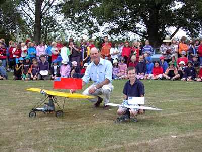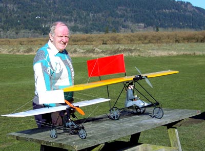with two of his Richard Pearse Monoplane models. He's made three in all,
