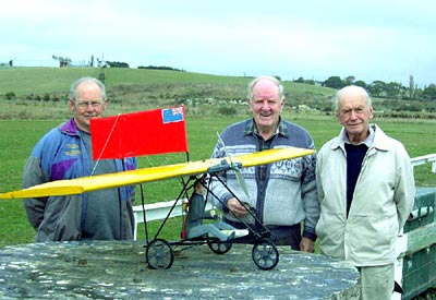 the Waitohi take-off site. The threesome consists of Hec Sapwell (left),