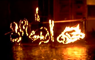 | Yet the May Day Rally is far from the only demonstration to take place in Chesterfield. A large demo, which took place one evening in early 1998, ended with a "fire sculpture" as shown. The images which were torched were symbolic of the 5 evils of capitalism: unemployment, poverty, ignorance, disease and squalour. | |