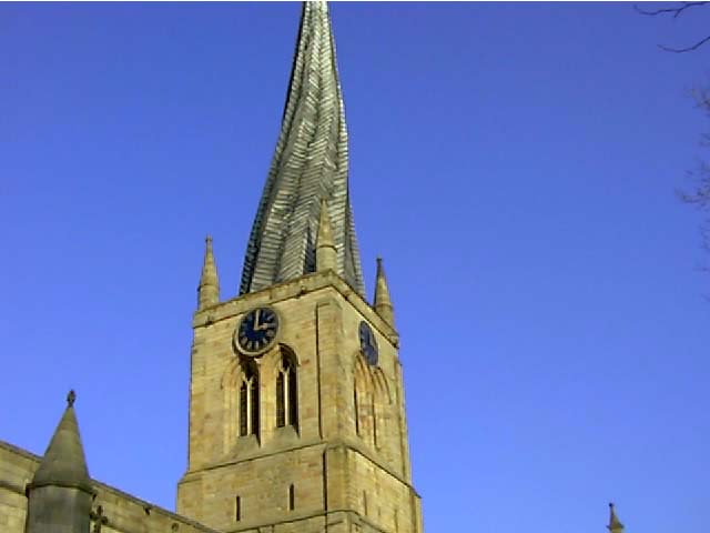 Chesterfield Crooked Spire or, more correctly, the spire of St Marys Church in Chesterfield. Probably the most famous building in Chesterfield, its spire is crooked because it was built using two different types of wood - which, over time, warped at different rates. |