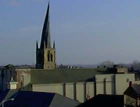 This is a more distant view of Chesterfield's "crooked spire", taken from the top of the multi-storey car park near the Co-Op Department Store. BTW despite what politically-incorrect jokes you may have heard, the Crooked Spire was not built by "two bent people" ! |