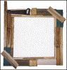 Cuadro hecho de tiras de madera y entrelazado en cobre en sus esquinas. |