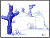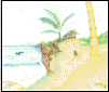 De alta vista, se ven dos ballenas, y de mas cerca, la vegetación tipica de playa. |