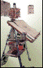 Lámpara capable de ajustarse en talla, con una base de tripie. El interruptor fué hecho a la mano. |
