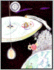 Dos orígenes de energía solar que permiten a un planeta de poseer su atmósfera, una de un punto en cada extremo, se voltea en oval en un vacio de energía, de estos forman un vortex en espiral hacia el exterior formando una corona. Los otros objetos son una masa ardiente, una nébula y un supernova. |