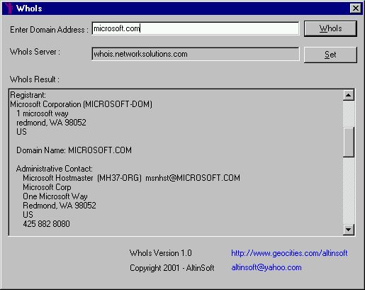 WhoIs is a protocol that connectes to a WhoIs server and gets some information about a domain name.You can see information about any domain name as long as it is entered to WhoIs server.