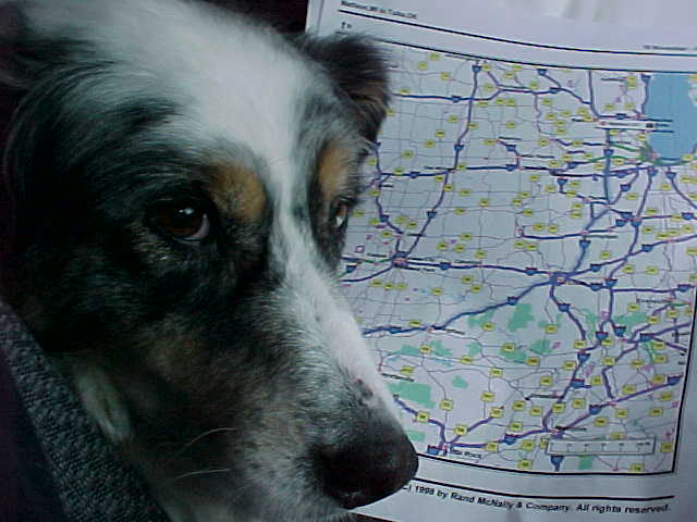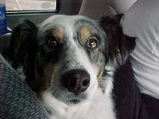 Miss Chena Beana in the back seat trying to make her way into the front seat! |
