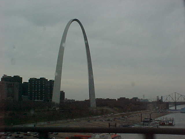 One of my many attempts to get a good picture of the Arch, while Troy takes the wrong exit through St. Louis! Luckily it merges into the right highway! |