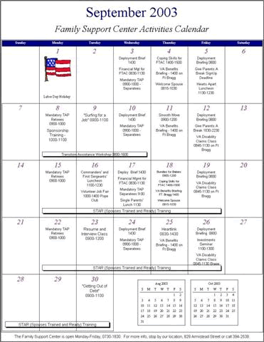 Calendar of Events for September 2003