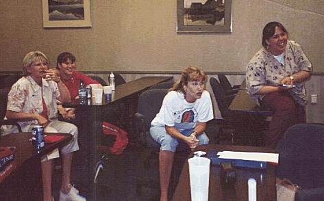 | Becky shows off her artistic talents drawing a C-130 | Kathy, Lizzie, Gina and Callie try to guess what their teammate is trying to draw |