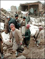 18 Φεβρουαρίου 03 Ανδρες των αμερικανικών ειδικών δυνάμεων δέχθηκαν επίθεση αγνώστων στο ανατολικό Αφγανιστάν, κοντά στα σύνορα με το Πακιστάν, αλλά δεν υπέστησαν απώλειες, όπως ανακοίνωσε εκπρόσωπος του αμερικανικού στρατού. 13 Φεβρουαρίου 2003 Αφγανοί αξιωματούχοι και χωρικοί έκαναν λόγο για νέους θανάτους αμάχων απο τους αμερικανικούς βομβαρδισμούς εναντίον θέσεων όπου υπάρχουν υποψίες ότι κρύβονται μαχητές ταλιμπάν, ενώ από την Κυριακή 9/2 τουλάχιστον 17 άτομα, κυρίως γυναίκες και παιδιά, έχουν χάσει τη ζωή τους. 11 Φλεβάρη 2003 Συμμαχικά αεροσκάφη έπληξαν με βόμβες στόχους ανταρτών στο κεντρικό Αφγανιστάν. Οπως ανακοίνωσε εκπρόσωπος των αμερικανικών δυνάμεων, τα αεροπλάνα έπληξαν τρεις σπηλιές και μία μικρή ομάδα ενόπλων στην κοιλάδα Μπαγκράν, όπου αμερικανοί στρατιώτες είχαν δεχθεί επίθεση. Από την επίθεση των ανταρτών δεν υπήρξαν θύματα. “Ζητήθηκε αεροπορική υποστήριξη και συμμαχικά F -16 εκτόξευσαν πέντε βόμβες GBU-12”, ανακοίνωσε ο αμερικανός συνταγματάρχης Ρότζερ Κίνγκ, εκπρόσωπος των δυνάμεων στη βάση Μπαγκράμ. Το ολλανδικό υπουργείο Αμυνας ανακοίνωσε ότι οι δράστες της επίθεσης κατά των αμερικανικών δυνάμεων διέφυγαν μετά τον βομβαρδισμό της περιοχής, στην επαρχία Ουρουζγκάν, από δύο ολλανδικά F-16. |