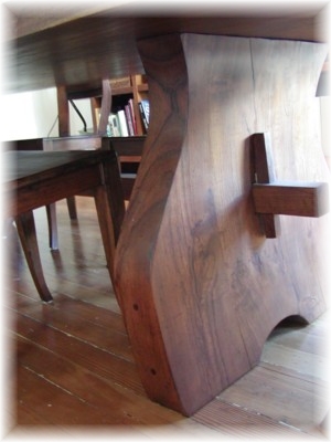 View of table leg and base from end.