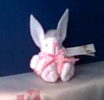 Éste simpático conejito lleva una tarjeta atada al cuello. |