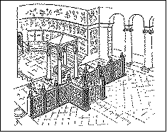 de gran tamaño, se les coloca directamente en el suelo alrededor del altar. Por el contrario las iglesias ortodoxas de Oriente se construyen hoy de la misma manera que se hacía hace más de mil años, y se las adorna con pinturas e iconos. Se trata aquí de un arte típico, al que tanto el arquitecto, como el artista están ligados al "typos" o modelo tradicional, sin que esto sea siempre uniforme. En Occidente también, según la tradición en común con Oriente, era esencial que el santuario estuviera separado del espacio reservado a los fieles, como antaño en Jerusalén el santuario del resto de los edificios del Templo. El tan traído principio de nuestros días, según el cual "el altar debe ser el centro ", es falso en lo referente a su localización. El altar es el centro de la acción sagrada: sobre él, en el curso de la celebración de la misa, reposa "el cordero sacrificado " del Apocalpsis (5,6). Por eso Santa Hildebranda de Bingen llama al altar "la mesa dispensadora de vida" y añade: "Cuando el sacerdote ... se acerca al altar para celebrar los santos misterios, un destello de luz aparece de pronto en el cielo. Los ángeles descienden, la luz rodea el altar ... y los espíritus celestes se inclinan a la vista del servicio divino" [4]. La separación estricta entre el santuario y la nave apareció en la época en la que las muchedumbres empezaron a adherirse en masa a la Iglesia; por consiguiente lo más tarde alrededor del año 300. Entonces se edificaron barreras alrededor del coro y se colocaron cortinas, una rodeando el baldaquino del altar, otra en la pérgola de las barandillas del coro, pérgola que en las iglesias pequeñas, se reducía a un simple travesaño de madera (cf. fig. 1). Todo esto porque se pensaba que el misterio celebrado en el altar, debía ser preservado, no exponiéndolo directamente a las miradas de los hombres. El iconostasio bizantino no es otra cosa que una extensión de esta barreras del coro (cancelli) de la Iglesia primitiva. El iconostasio tiene habitualmente tres puertas, como las cancelas construidas en tiempos del emperador Justiniano (]'565) en la iglesia de Santa Sofía de Constantinopla, dotada ya, como en general en los siglos siguientes, de representaciones de Cristo o de María, ángeles, profetas y apóstoles. El célebre icono de Cristo, en el monasterio del monte Sinaí, data de la misma época; debe provenir, teniendo en cuenta sus dimensiones -84 centímetros de alto-, de uno de estos antiguos iconostasios. Los iconos se colocaban, y se colocan todavía, parte entre las columnas de la pérgola y parte encima de éstas como en el caso de la "deisis" (Cristo entre María y Juan Bautista). |