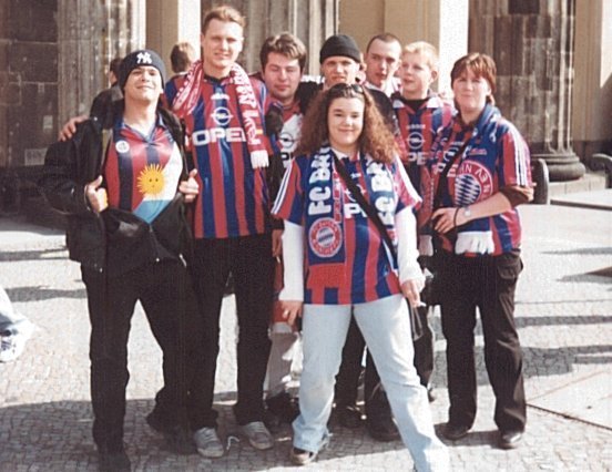 Red and Blue friendship with the Bayern of Munich fans. I am at the left showing the San Lorenzo top