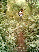 y zigzageante sendero el grupo busca el final de la quebrada.