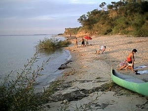 | La playa principal tiene casi un kilómetro de arenas y río manso y poco profundo. | |