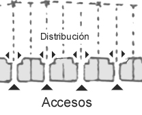 accesos comunes cada dos viviendas en forma de zaguán de unos 4