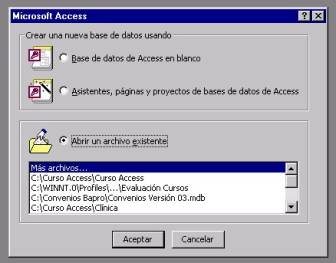 siempre que pongamos en funcionamiento el programa Access 2000, aparecerá