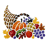 Pine cones, acorns, wheat, dried leaves, ears of corn, and other fruits and nuts
