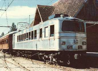 Trem de turismo: automotriz A-3 puixando um carro dre passageiros, passando pela estação de Vila Jaguaribe. Esta foto foi feita quando a A-3 ainda tinha o corpo coberto com chapas de alumínio, antes da reforma.