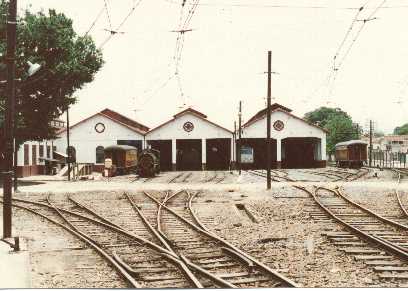 A foto acima mostra o depósito de automotrizes e carros, em Pindamonhangaba, notando-se ao lado esquerdo da foto parte das oficinas.