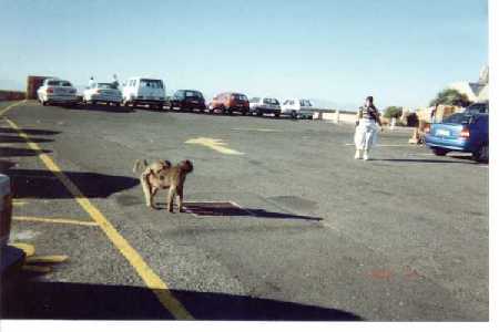 We saw baboons at Cape Point, including this mother and infant. Baboons are generally more aggressive than your run-of-the-mill simian; they shout and jump, and they may even throw things.