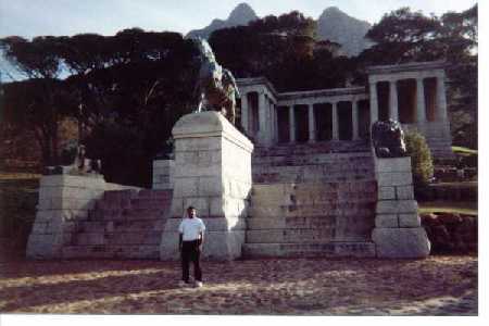 Here is the Rhodes Memorial. Cecil John Rhodes was the famous British imperialist who stated he would conquer the world for the British Empire. The country of Zimbabwe used to be called Rhodesia after him.