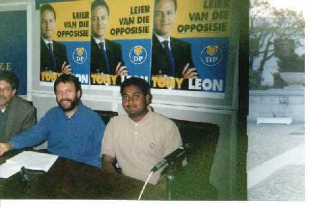 Professor Price, James Selfe, a Democrat Party Member of Parliament, and myself. The DP used to be the only anti-apartheid party in Parliament during the apartheid years, but after the fall of apartheid they joined with the remnants of the apartheid regime to form the Democratic Alliance, the main opposition to the ANC today.