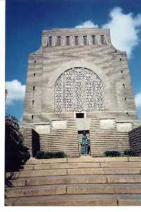 The Voortrekker Monument in Pretoria. This interesting obelisk was built in the 1930s as a monument to the Dutch colonists who journeyed from the original Cape Colony to settle the eastern parts of South Africa. It was also intended to be a symbol of Afrikaner unity.