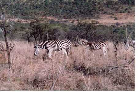 Some zebras at Pilansberg Game Reserve, near Sun City in the former homeland of Bophuthatswana.