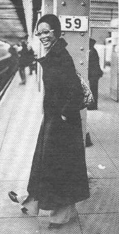 In New York, a begoggled Trina waits for subway train. Below, she stops by apartment of actor Raymond St. Jacques. With them is St. Jacques' son, Sterling.