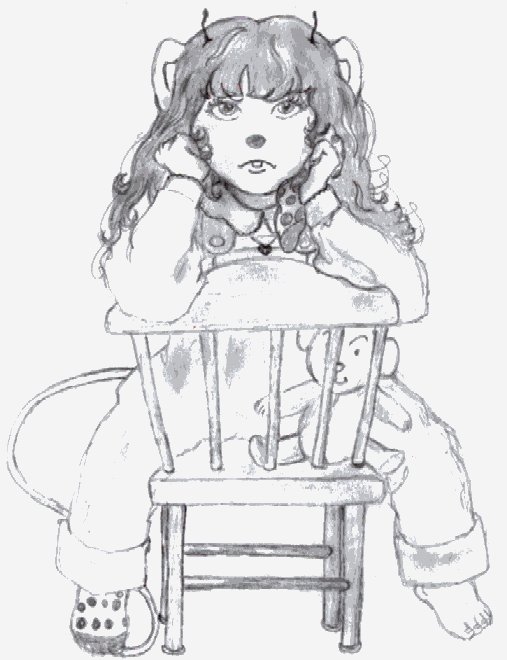 Fred her faithful teddy was perch in front of her and to his surprise, she had a serious attitude. Her little face was all scrunched up and he could hear her mumbling.