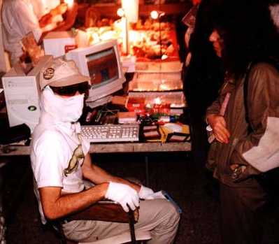 con una música techno que hace estallar los oídos, y que,