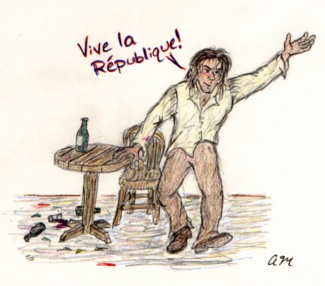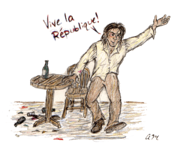 This one is of Grantaire right before he joins Enjolras in front of the firing squad. I was messing around, experimenting with stuff, and made a cheesy animated version which you can see here. The animated one is 365k, so if your modem is anything like mine it'll take a while to download.