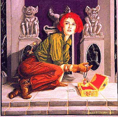 These pictures are from the Guardians game card series and are done by Don Maitz .