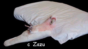 オランダ在住、クルマサカオウムのZazu。 齧るの大好き、食べるの大好きな男の子。 飼い主のスーさんのすることを何でもまねする楽しい鳥さん。