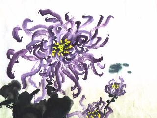 不共春風鬥百芳,自甘籬落傲秋霜;園林一片蕭疏景,幾朵依稀散晚香