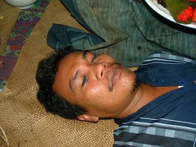 of Dappol Siburuk : In ancient time life a family which have only one child. One day the child fell from coconut palm and hit to stone, his father was trouble and sad because bones his child was crushed and broken, such as his vessels, while he had only one child. One night the father prepared sacrifice and prayed to joint white blood of God with His blood and called spirit of good where is in His body (such as written before) after that in the night He dreamed ; an old man came to Him and said in the dream “ Behind your house there was nest of Siburuk bird which hatched (egg) just now, tie past break His leg, hand, neck and all his body were crushed but never die. After that wait for nine days and look back at the young bird will be cured, after that take its young with its nest, then please cook with coconut oil and use it to cure your child then He will be cured.” |