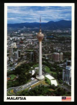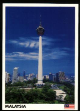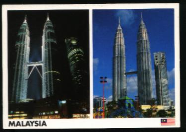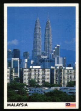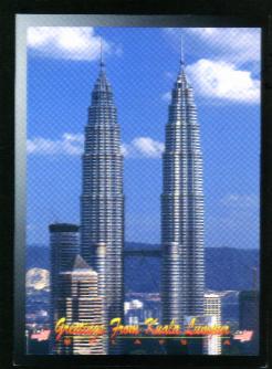 Like twin rockets poised to take off, Petronas Twin Towers in Kuala Lumpur is the World's tallest building at 452 metres. Connected by a sky-bridge at the 88th floor, it is the home of Petronas, Malaysia's national oil corporation. Front of the card says "Greetings From Kuala Lumpur". Kuala Lumpur is the Capital of Malaysia. Back of the card it says "Greetings From Malaysia". - By Heritage Postcard. - pttbl.