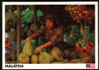 A roadside hut selling Rambutans and Durians - The King of Local Fruits. The Durian fruit is enjoyed by almost all Locals but we have seen Tourists (foreigners) piching their nose while eating (trying to eat) the fruit. The Durian fruit has a very strong aroma. Most hotels display a sign, not allowing the Durians into the hotels. - By Yacine Collections. - # 18191