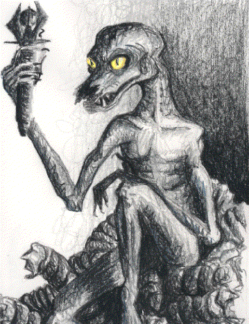 A foul dhergoloth, scheming on its filthy throne