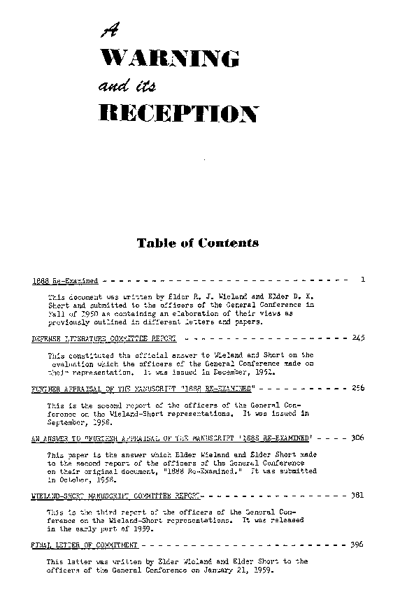 Portions of this book are now available at "A Warning & its Reception"