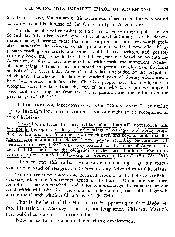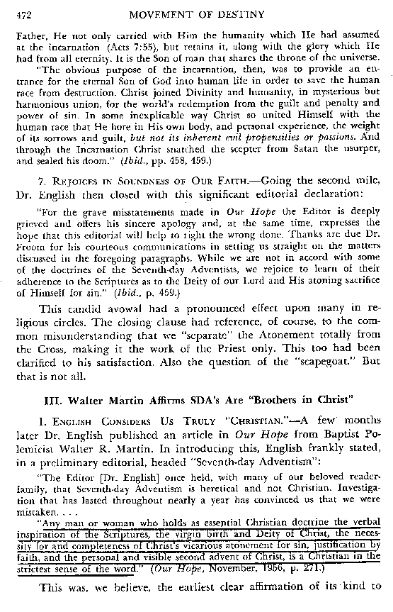 The book then goes on to discuss the part played by "Questions on Doctrine" in this quest to be seen as fellow-Christians by the fallen churches of Babylon.