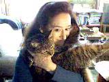 It began to rain and snow. I got a cardboard box, cut a door into it, put it inside a plastic storage bin, and heated it with a shoplight. This was much to the deck kitty's liking. Finally one day when the snow was 12 inches deep, I became fed up. I opened the patio door one morning and said, "Come in." He stuck in a couple of whiskers and stood in the doorway just like a cat. I helped him in the rest of the way, shut the door, locked it, told him, "There. Now you're in." Then I went off to work. When I came home from work, he was sitting on the couch next to the person who thought he was an ordinary-looking cat. Good work, kitty.