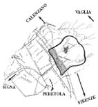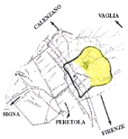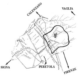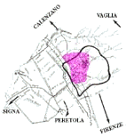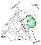 a Nord con Calenzano e SettimelloIl territorio di Querceto è collinare, il borgo è chiuso alle spalle da Monte Morello.