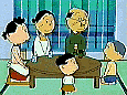 Chibimaruko-chan is very popular in the world. All generations of people like it in Japan. The show is on early Sunday nights. There are several characters in the family and the school. Chibimaruko-chan is the main character's nickname. Her real name is Momoko Sakura. Her nickname is "Chibi" (shorty) because she is very short. Most Japanese girls are called by their names plus "Chan" (literally meaning child). Chibi Maruko-Chan is an elementary student. She has a round face and always has a children's school satchel. She likes an old idol named Momoe Yamaguchi! In her family, there are five people. Her grand father, Tomozo, likes haiku (a traditional, three-line Japanese poem). Also, he is an elderly senior person. Her father is Hiroshi, and her mother is Sumire. In school, she has many friends. Tamae is her best friend. Another is a characteristic person. Boo-Taro looks like a pig. In short, Maruko connects with many interesting people. Also, she is interesting.